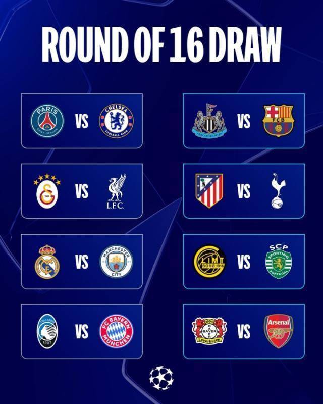 欧冠淘汰赛16强对阵